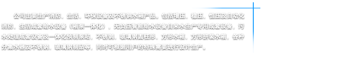 江蘇燁達環(huán)保設備有限公司坐落在江蘇省鹽城市建湖縣城,東臨黃海之濱,背倚蘇北平原,處于長三角經(jīng)濟一體化和江蘇沿海開發(fā)兩個國家級戰(zhàn)略疊加區(qū)域內(nèi),素有“水鄉(xiāng)明珠”美稱。我公司鑒定走“產(chǎn)、學、研”相結(jié)合的路子,是江蘇省供水設備行業(yè)的大型企業(yè)。公司以“一流的管理,一流的研發(fā)設計,一流的質(zhì)量意識,一流的售后服務”為宗旨,嚴格控制原材料質(zhì)素,講求“品質(zhì)是企業(yè)的生命力”的理念,嚴把質(zhì)量關,從而為客戶提供優(yōu)質(zhì)的供水設備。公司主要生產(chǎn)消防、生活、環(huán)保設備及不銹鋼水箱四大類產(chǎn)品。包括增壓、穩(wěn)壓、恒壓及自動化消防、生活成套給水設備(箱泵一體化),無負壓智能給水設備自來水生產(chǎn)專用成套設備,污水處理成套設備及一體化預制泵站,不銹鋼、玻璃鋼圓柱形、方形水箱、方形拼裝水箱,各種分集水器及不銹鋼、玻璃鋼制品等,同時公司可根據(jù)用戶的特殊需要進行設計生產(chǎn)。燁達人將以科學的管理、精湛的技術(shù)、可靠的質(zhì)量、優(yōu)良的品質(zhì)向社會各界服務,我們始終坦誠相見,我們當然走在最前面······ |